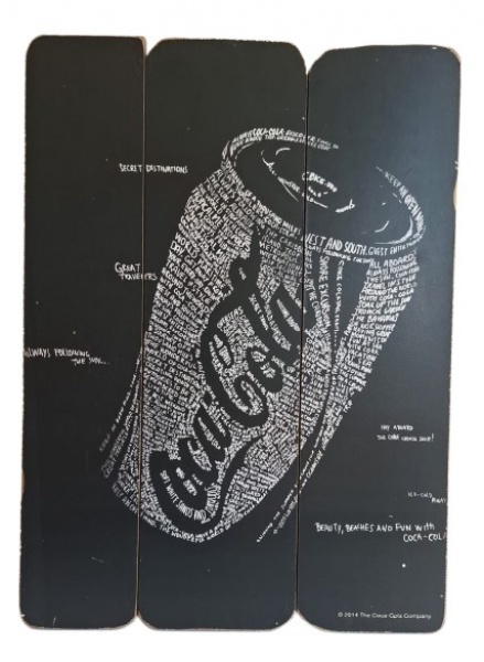 • Placa deorativa com propaganda a COCA-COLA em simlar de madeira. Medida 60x37cm.