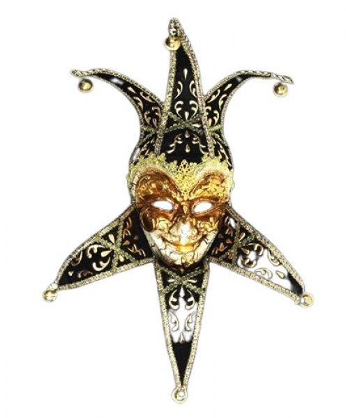 • Máscara veneziana com ricos adornos, bordados e bela policromia. Medida 50 cm.