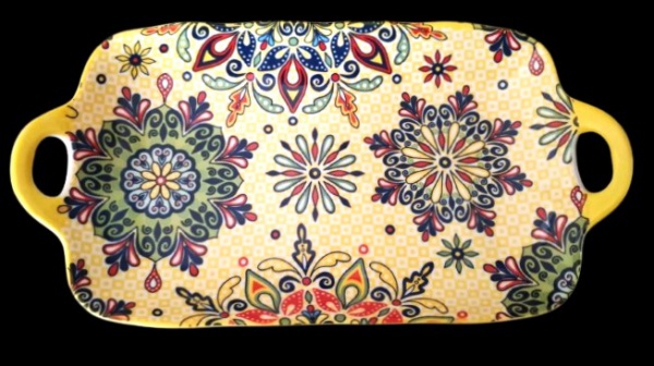 • Belíssima travessa em porcelana ricamene policromada ao melhor estilo Toscano. Medida 17x32cm.