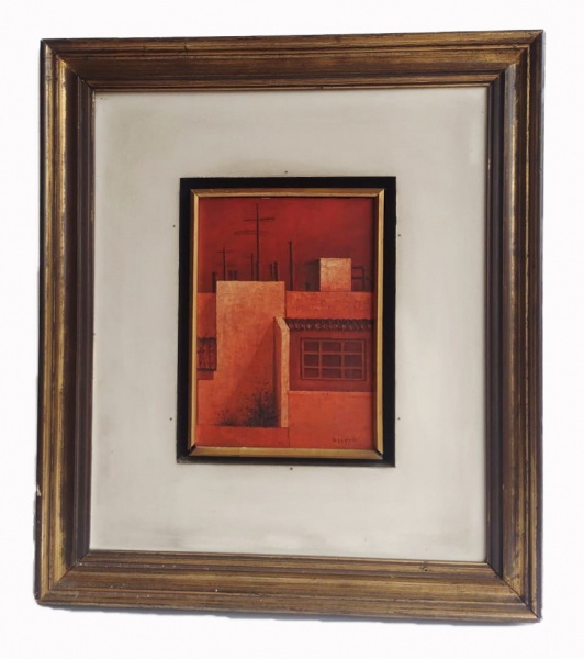• IRLANDINI - óleo sobre tela, assinado e datado de 1973. Pintor e restaurador italiano que viveu no Rio de Janeiro, Giuseppe Irlandini pintou figuras e casarios com igual desenvoltura. Em certa fase foi influenciado pelo abstracionismo e pelo cubismo, mas voltou ao figurativismo, pintando casas e telhados de Ipanema, no Rio.