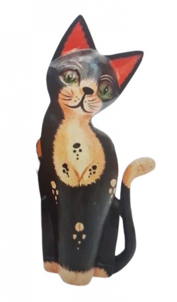 • Grande escultura de gato em bloco de madeira coisa rica policromia. Medidas 40 cm