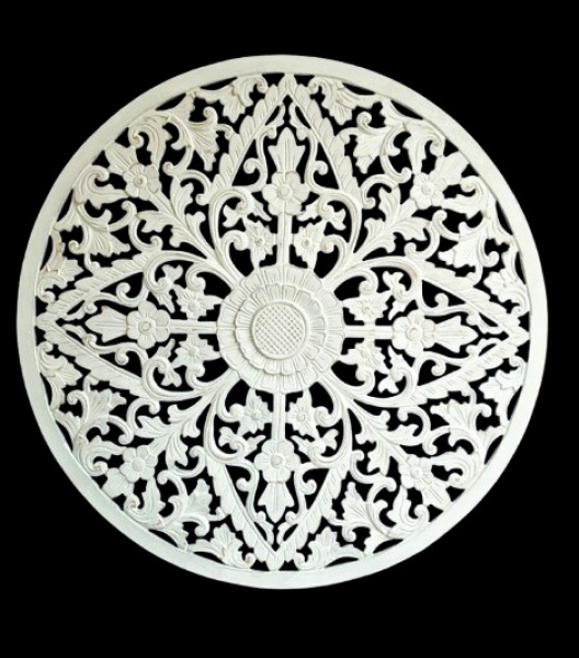 • Grande e bela mandala esculpida em similar de madeira e pintada de branco. Peça da indonésia. Medida 60 cm de diâmetro.