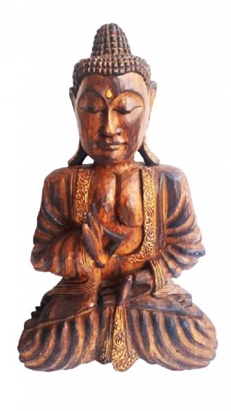 • Grande buda esculpido em bloco de madeira com esmero de entalhes. Medida 40 cm de altura.