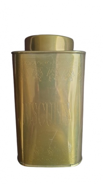 • Pote de biscoitos em metal dourado trabalhado. Medida 21 cm de altura.