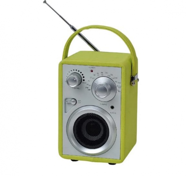 • Bonito e estiloso rádio relógio AM/FM com revestimento em couro ecológico.