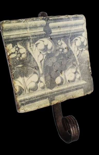 • Cabideiro com um gancho encimado com azulejo hidráulico de cerâmica.