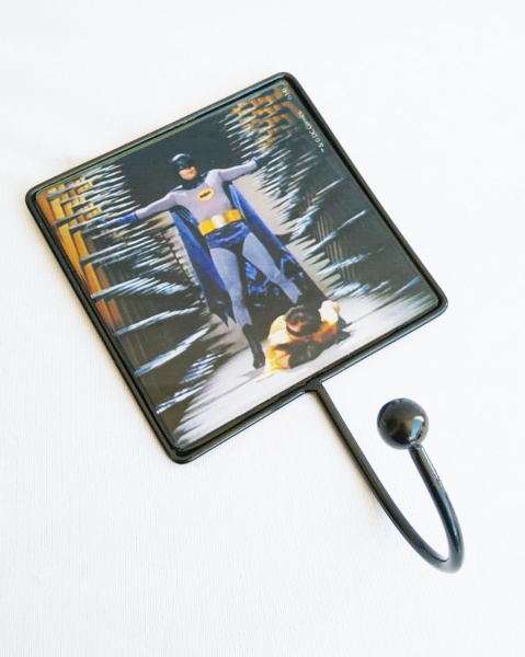 • Cabideiro retro do Batman com imagem em bloco de vidro e estrutura com gancho de ferro.