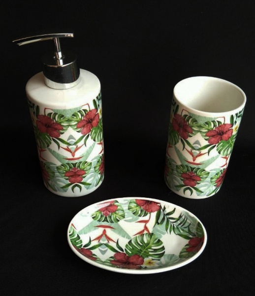 • Conjunto com três peças em porcelana com belo padrão de folhagens.