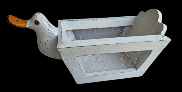 • Criativa e bela cesta de ovos em madeira e forma de pato. Medida 16x15x35cm.