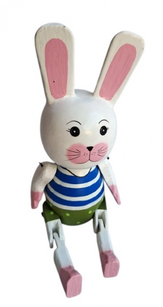 • Belíssimo coelho articulado e esculpido em bloco de madeira com rica e alegre policromia. Medida 25cm.
