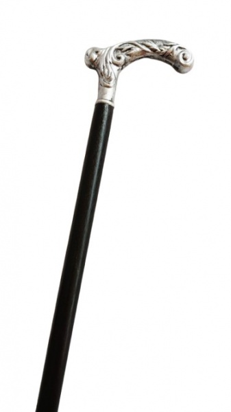 • Bengala de madeira com cabo em metal cinzelado trabalhado.