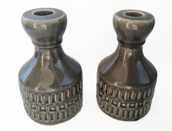 • Par de castiçais para velas em porcelana trabalhada. Medida 10 cm de diâmetro e 18 cm de altura.