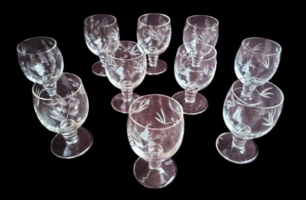 • Dez ( 10 ) Elegante e delicadas taças para aperitivos, em cristal, com fina lapidação representando cerejas.